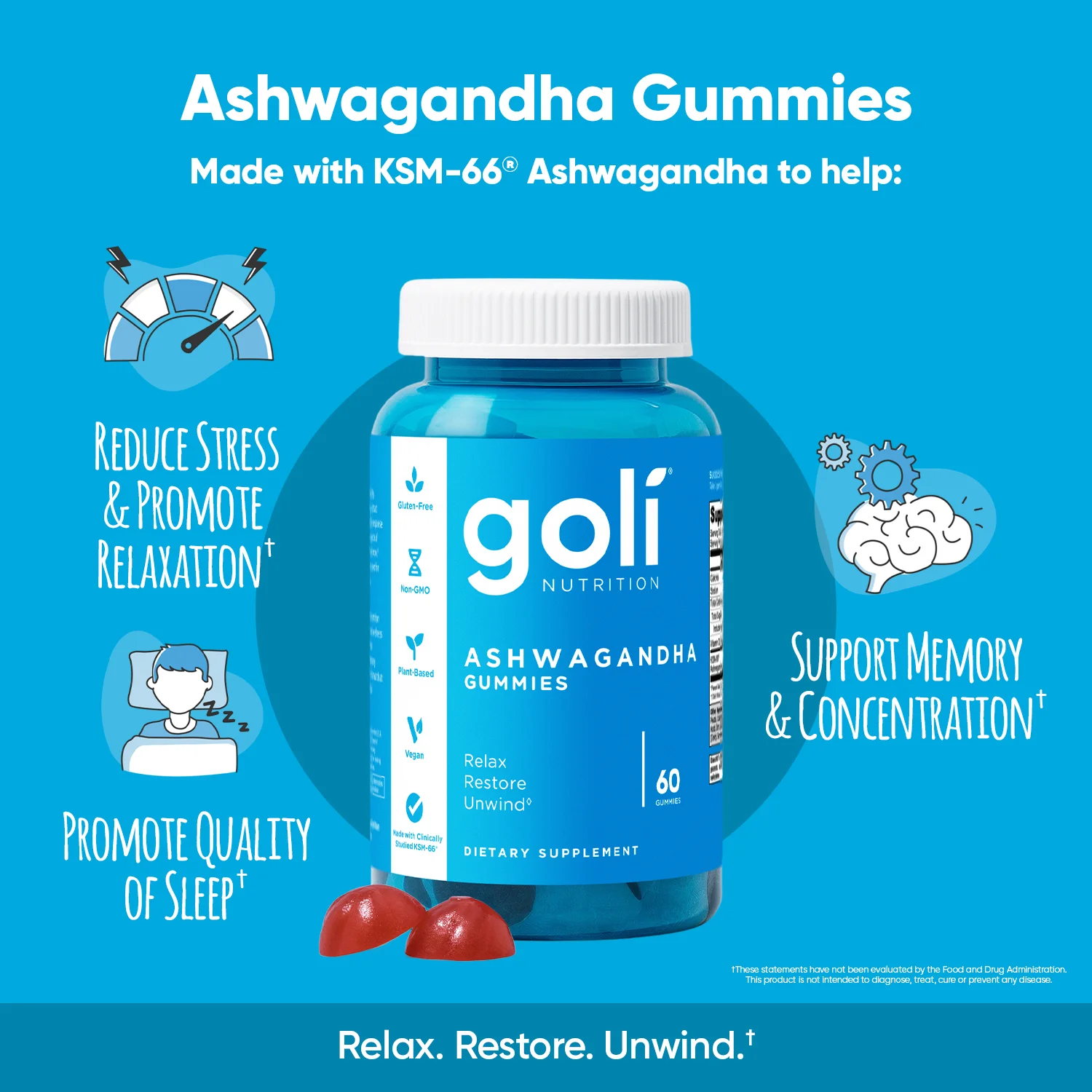 Guaranteed 100% original Goli Nutrition Ashwagandha Gummies, Mixed Berry Flavor, 60 Count