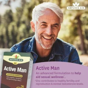 Natures Aid Active Man (60 Tablets) – Made in UK is a carefully formulated dietary supplement created to help men maintain peak performance and everyday vitality. Manufactured in the UK under strict quality standards, this product combines essential vitamins, minerals, and natural extracts to support energy metabolism, muscle function, and overall male health.
