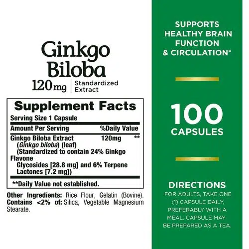 • Product Name: Nature’s Bounty, Ginkgo Biloba, 120 mg, 100 Capsules