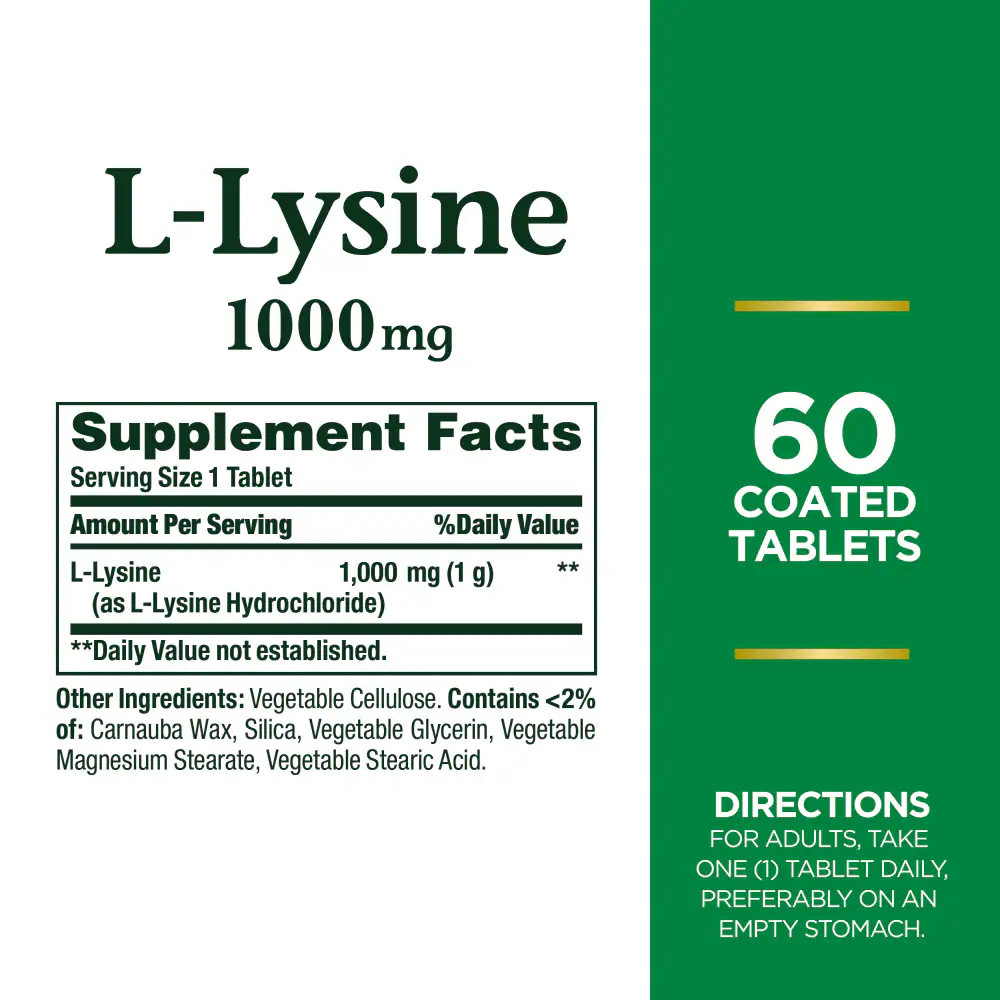 Nature’s Bounty, L-Lysine – 1000 mg (60 Tablets)