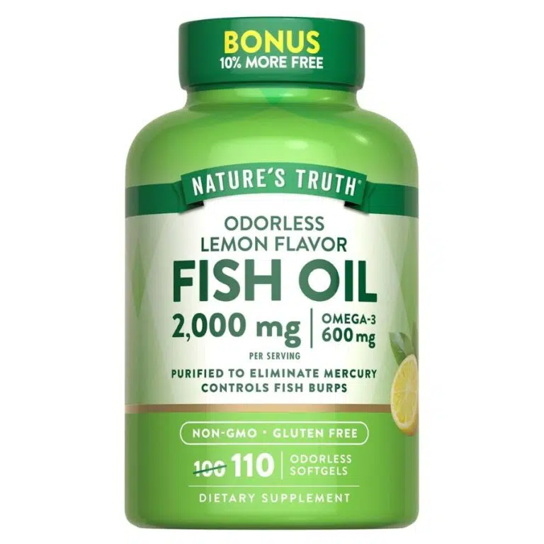 Nature’s Truth Fish Oil 2000mg | Omega-3 | Lemon Flavor | 110 Softgels is a top-tier dietary supplement designed to support heart, brain, and joint health. Sourced from high-quality fish oil, it provides a rich concentration of Omega-3 fatty acids (EPA & DHA), essential for maintaining a healthy lifestyle.
