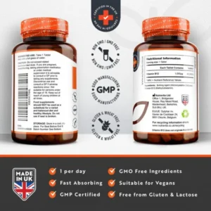 Nutravita B12 1000 mcg Vegan (365 Tablets) | Made in the UK is a top-tier supplement manufactured under strict quality standards in the UK. Each tablet delivers a potent 1000 mcg dose of Vitamin B12, essential for energy production, mental clarity, and nervous system support.