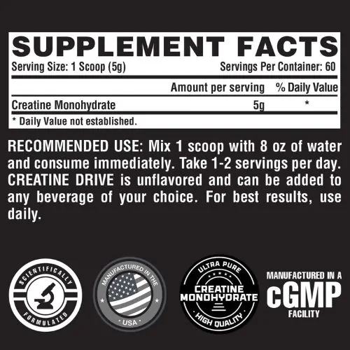 • 100% pure micronized creatine for superior absorption
