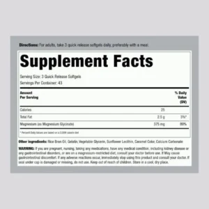Each softgel delivers 375mg of magnesium, helping to support energy metabolism, reduce muscle fatigue after workouts, and promote better recovery. Whether you are a gym enthusiast, athlete, or someone aiming to maintain balanced nutrition, this supplement fits perfectly into your daily routine.