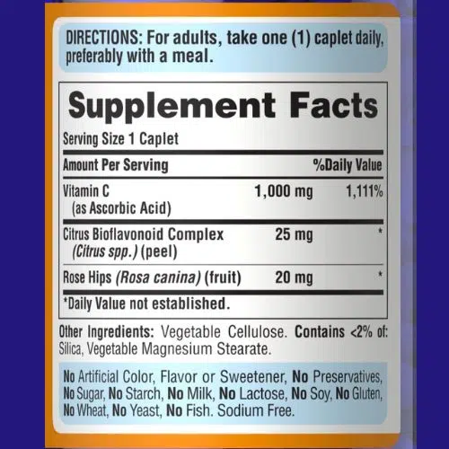 • High-potency 1000 mg Vitamin C per tablet