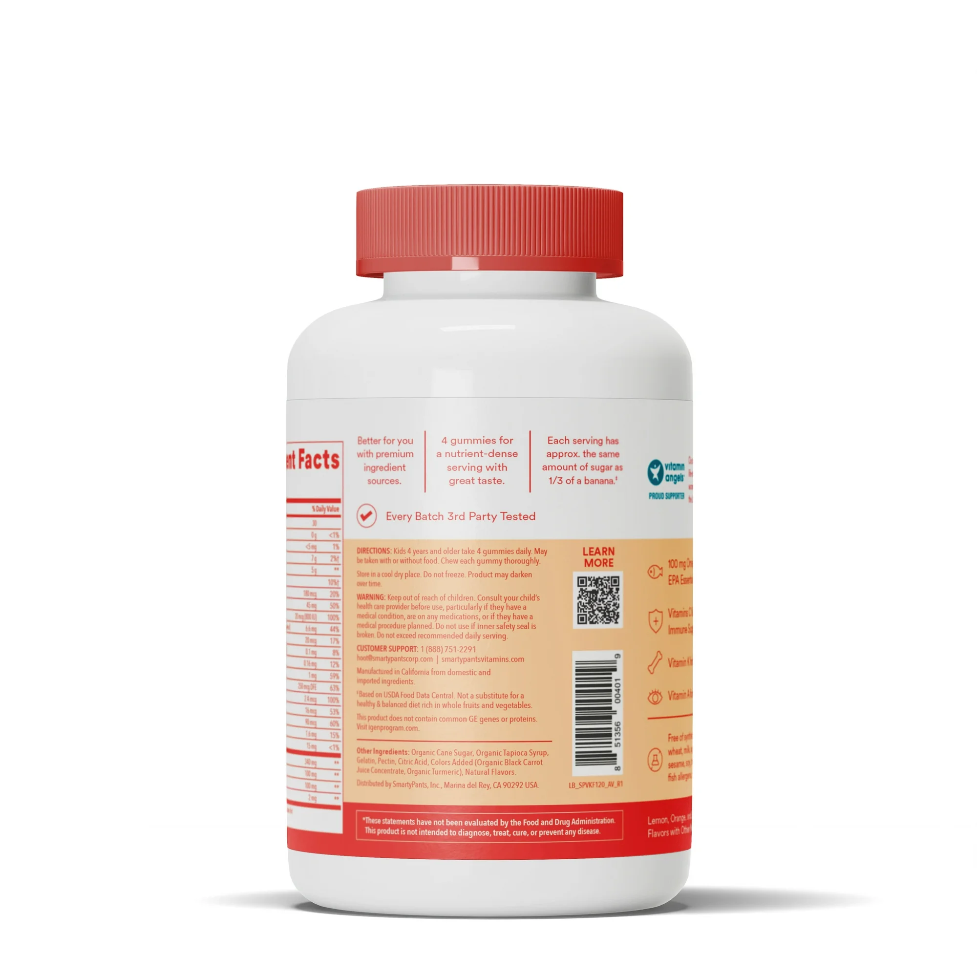 The SmartyPants Kids Multi & Omega 3 Fish Oil Gummy Vitamins with D3, C & B12 – 120 ct combines essential vitamins with Omega-3 fish oil (EPA & DHA) in a delicious, easy-to-chew gummy form. It is thoughtfully formulated to help support overall wellness, immune health, bone strength, and brain development in growing kids.