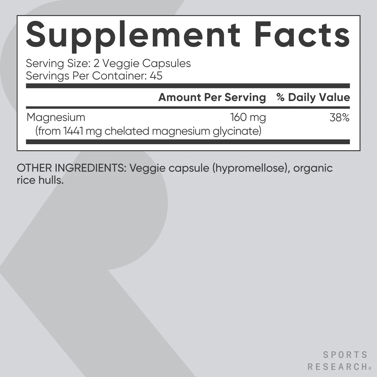 Sports Research, Magnesium Glycinate, 90 Veggie Capsules (80 mg per Capsule)